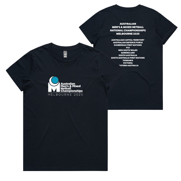 2025 Australian Men's & Mixed Netball Association National Champs Ladies Tee - Navy
