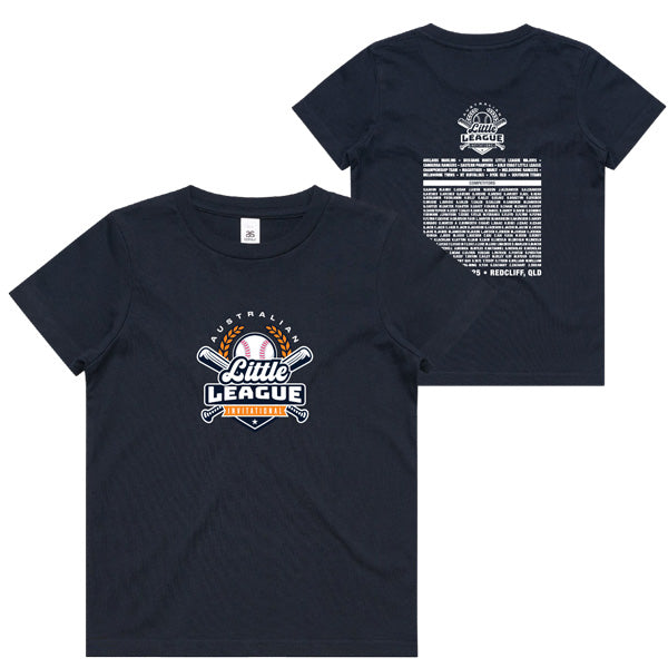 The classic tee. This tee has low shrinkage (~ 3%) and a sturdy neck rib to give it extra durability. This item is cut for the female frame and is printed with the 2025 Baseball Australia Little League Invitational Championship and a full list of competitors names on the back.
