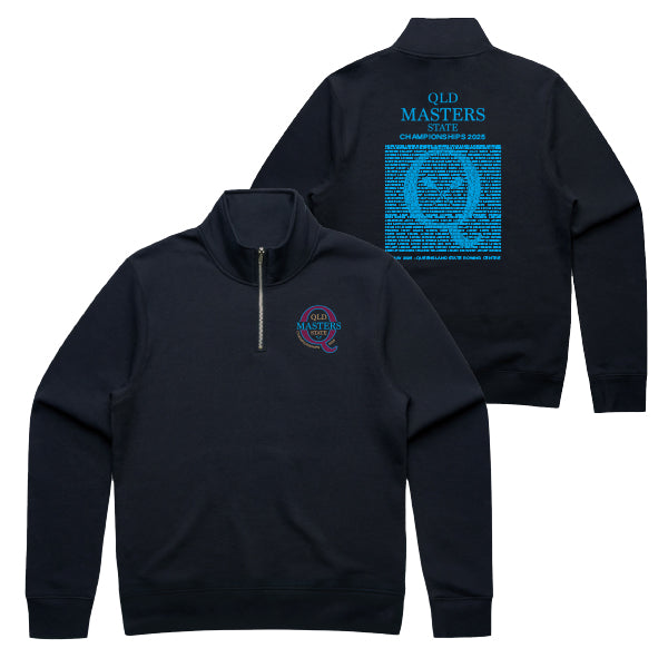 Elevate your casual wardrobe with this Half Zip Crew. This mid-heavy weight sweatshirt boasts a regular fit, crafted from 80% cotton and 20% recycled polyester anti-pill fleece and is pre-shrunk for enduring comfort. This item is printed with the QLD Masters design and a full list of competitors names on the back.
