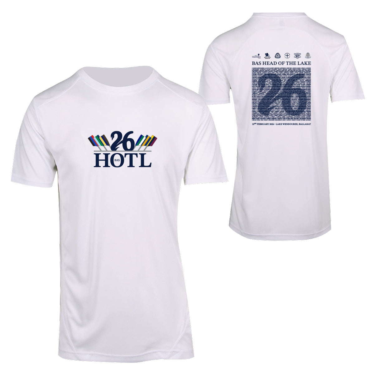 Keep cool, dry and comfortable with this full poly-tee. Featuring quick drying fabric and exposed stitching for that sporty look. This garment is printed with the BAS Head of the Lake design on the front and a full list of competitors names on the back.