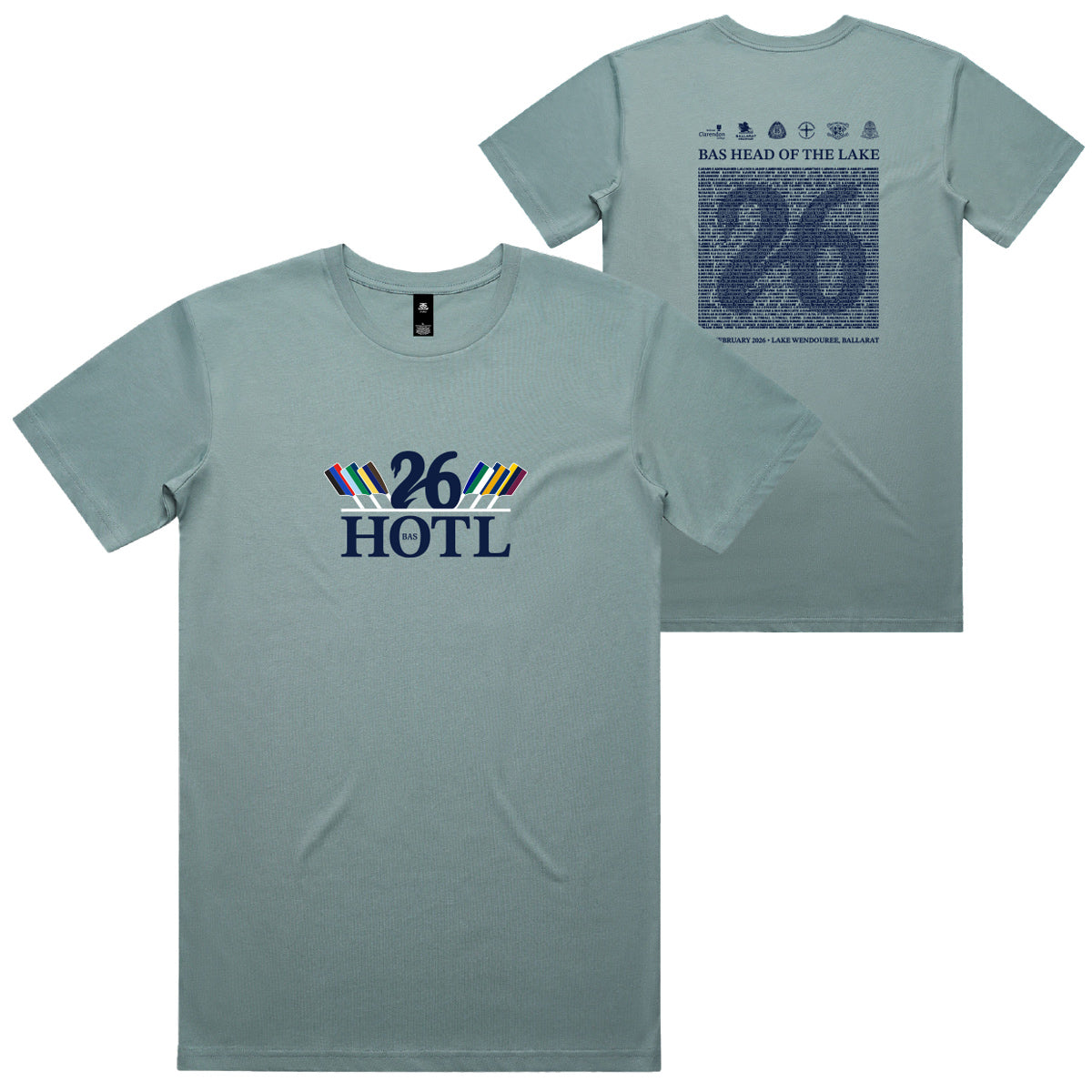 The classic tee. This tee has low shrinkage (~ 3%) and a sturdy neck rib to give it extra durability. This item is cut for the male frame and is printed with the BAS Head of the Lake design and a full list of competitors names on the back.