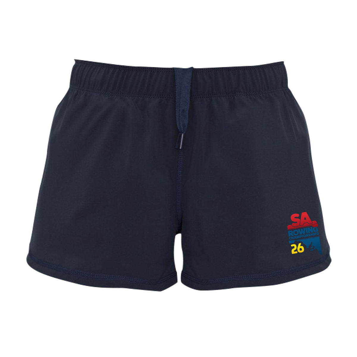 • Flexible, comfortable, durable and versatile. These shorts are fantastic for general everyday use. Made from a quick dry fabric with added breathability to keep you cool in hot weather. This garment is cut for the female frame and is printed with the South Australian Rowing Championships design.