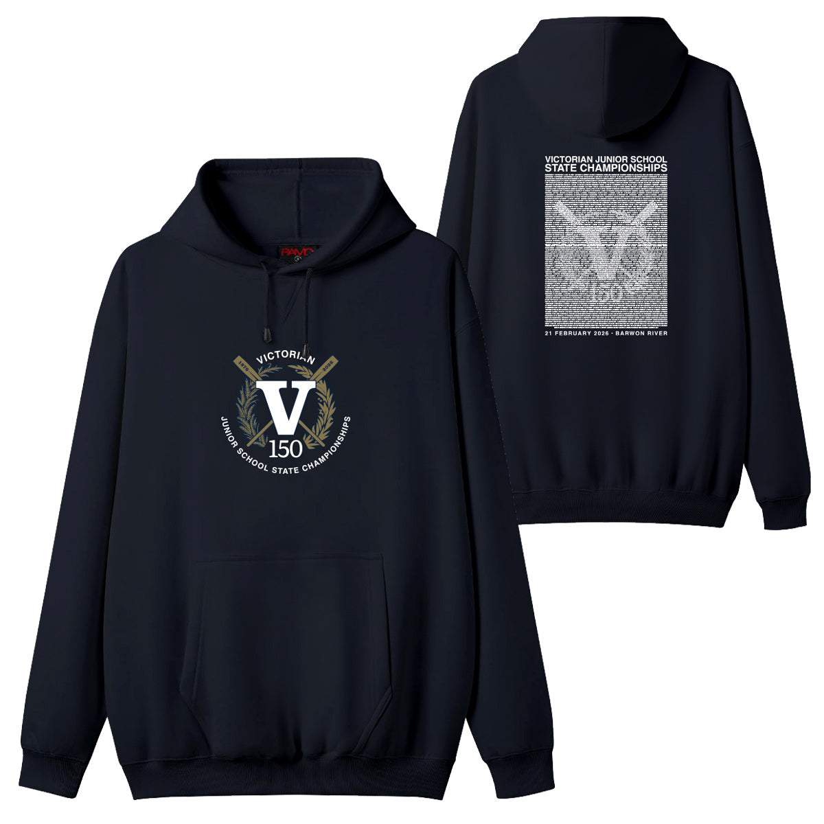A garment for almost every occasion. The VIC Junior Girls State Champs hoodie is made from a cosy poly cotton fleece with a kangaroo pocket and hood to keep your hands and head warm. This hoodie is printed with the VIC State Champs design and a list of competitors names on the back.