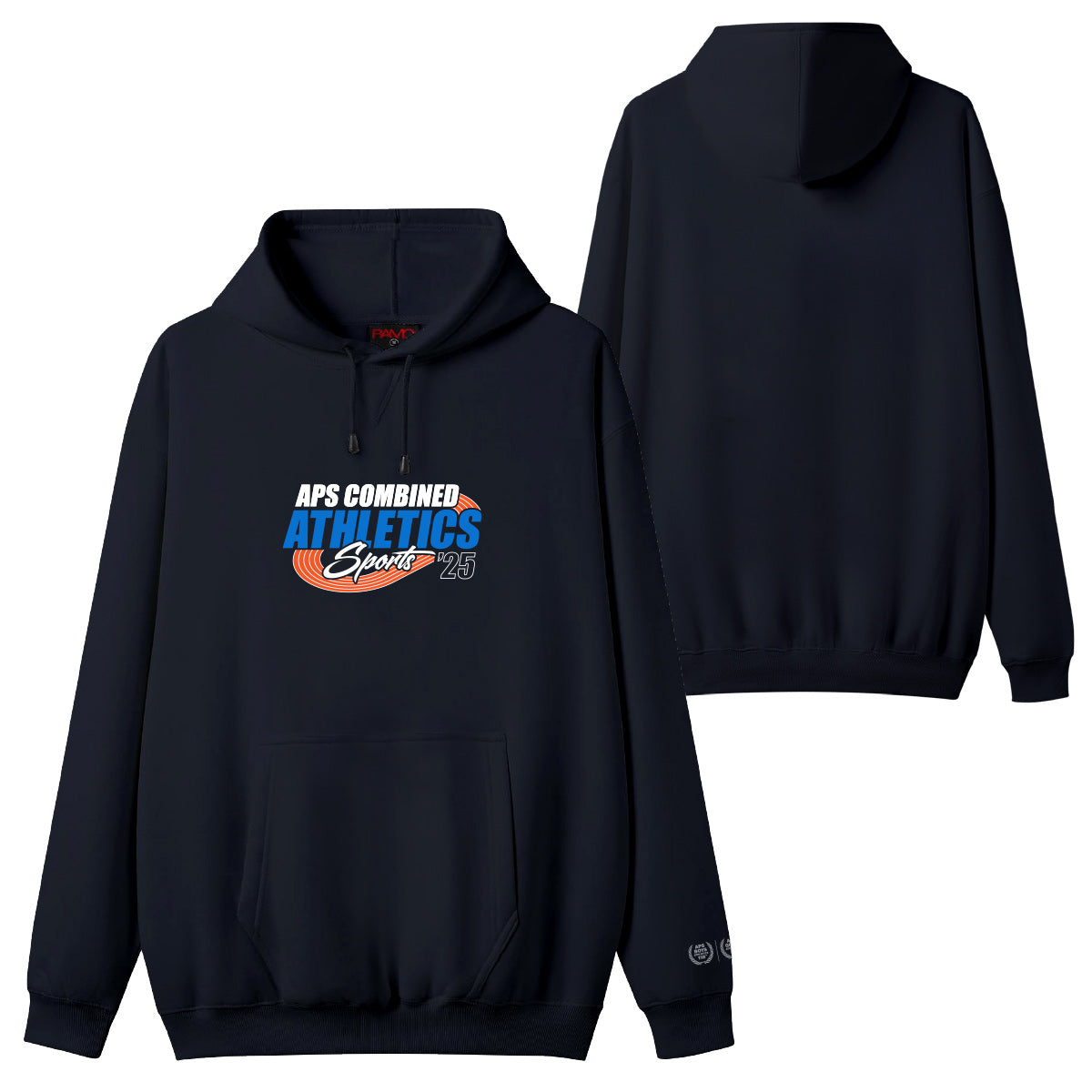 A garment for almost every occasion. The APS Girls & Boys Combined Athletics hoodie is made from a cosy poly cotton fleece with a kangaroo pocket and hood to keep your hands and head warm. This hoodie is printed on the front and sleeve with the APS Combined Athletic Sports design.