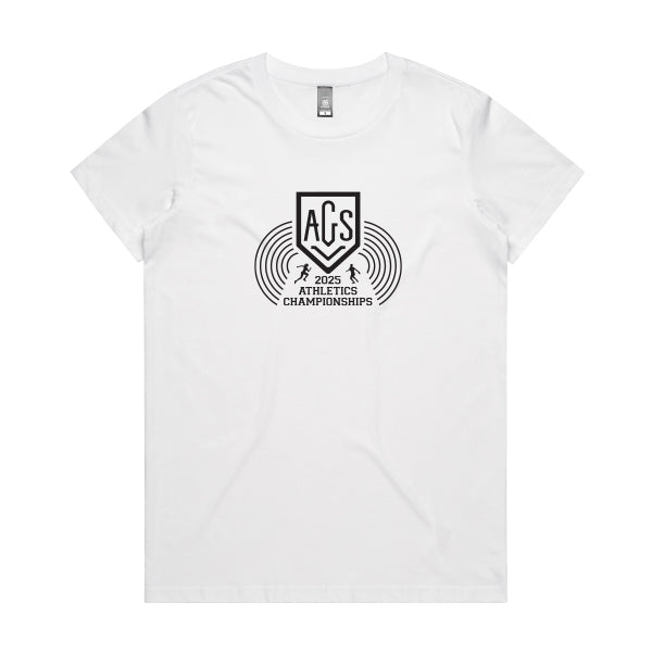 The classic tee. This tee has low shrinkage (~ 3%) and a sturdy neck rib to give it extra durability. This item is cut for the female frame and is printed with the AGSV Athletics Champs design on the front and back.