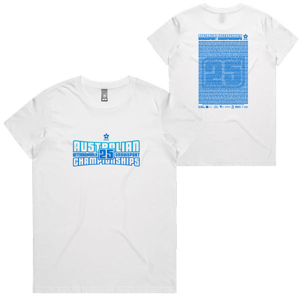 The classic tee. This tee has low shrinkage (~ 3%) and a sturdy neck rib to give it extra durability. This item is cut for the female frame and is printed on the front with the AUS ISSC Design.