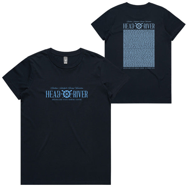 The classic tee. This tee has low shrinkage (~ 3%) and a sturdy neck rib to give it extra durability. This item is cut for the female frame and printed on the front with the BSRA Head of the River design and printed on the back is a full list of competitors names.