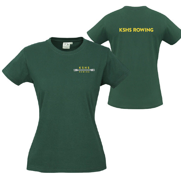 • The classic tee. This tee has low shrinkage (~ 3%) and a sturdy neck rib to give it extra durability. This item is cut for the female frame and is printed with the Kenmore SHS design on the front LH breast and 'KSHS ROWING' across the back.