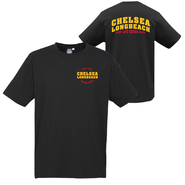 The classic tee. This tee has low shrinkage (~ 3%) and a sturdy neck rib to give it extra durability. This item is cut for the male frame and is printed with the Chelsea Longbeach Surf Life Saving Club design.