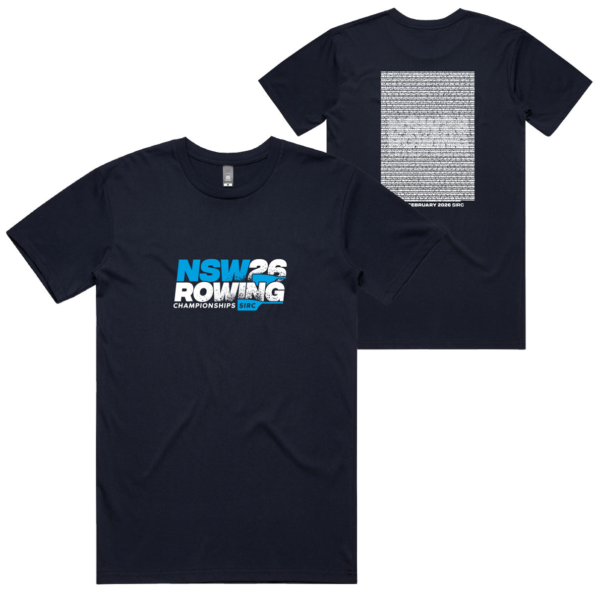 The classic tee. This tee has low shrinkage (~ 3%) and a sturdy neck rib to give it extra durability. This item is cut for the male frame and is printed with the NSW State Championships design and a full list of competitors names on the back.
