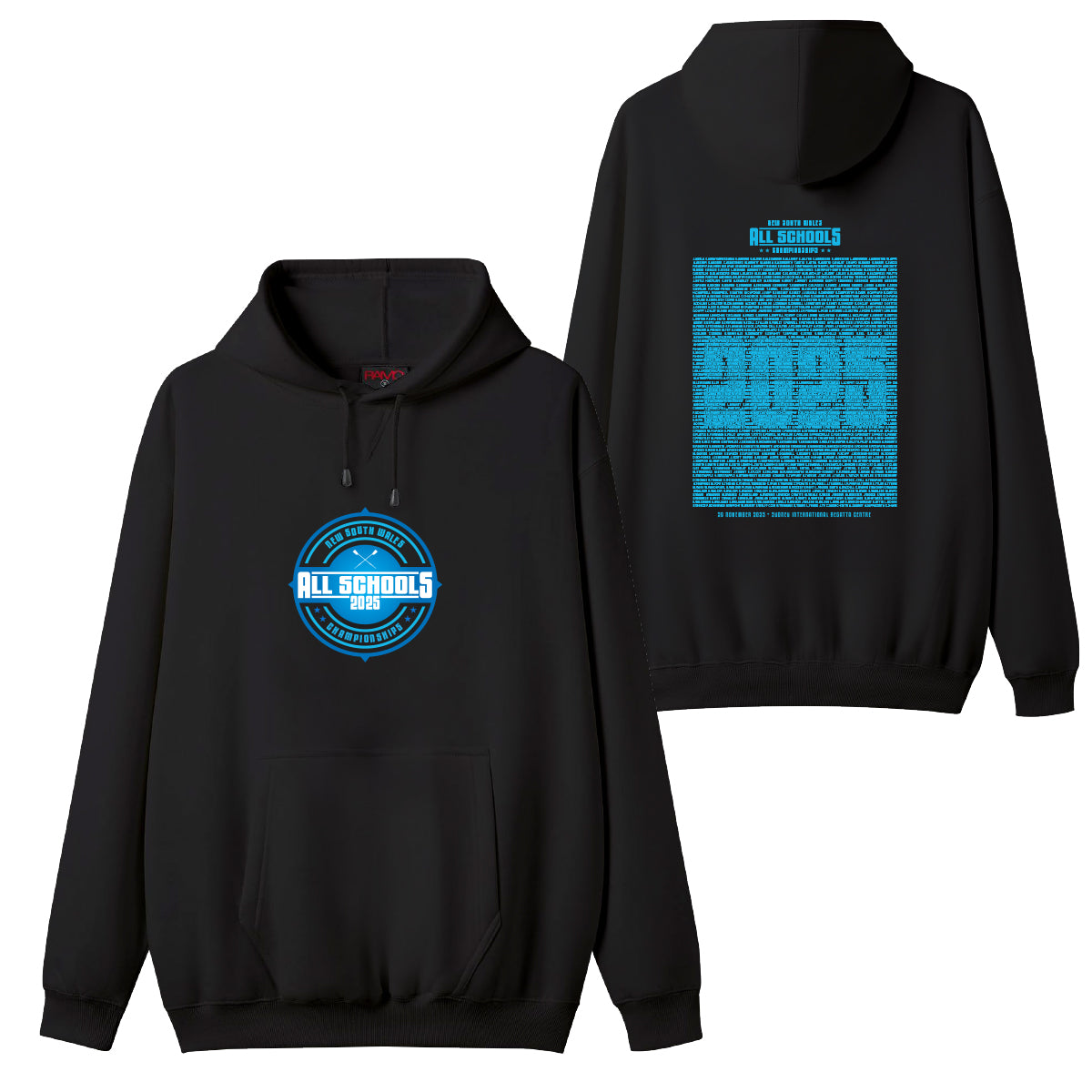 • A garment for almost every occasion. The NSW Independent Schools Champs hoodie is made from a cosy poly cotton fleece with a kangaroo pocket and hood to keep your hands and head warm. This hoodie is printed with the NSW All Schools Champs design.