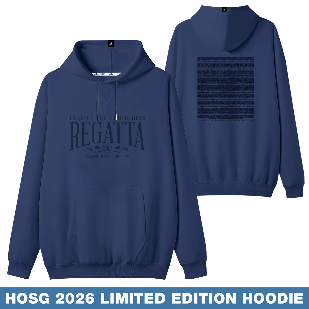 A garment for almost every occasion. The HOSG LIMITED EDITION hoodie is made from a cosy poly cotton fleece with a kangaroo pocket and hood to keep your hands and head warm. This hoodie has the 2026 HOSG Logo Embroidered on the Front Centre Chest of the Victorian HOSG design on the front, and a full list of competitors printed on the back.