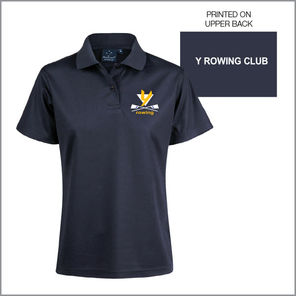 Featuring cool-dry fabric that wicks the sweat away from the skin to the surface which helps enhance evaporation keeps you cool, dry and comfortable. This polo is printed with the Y Rowing design