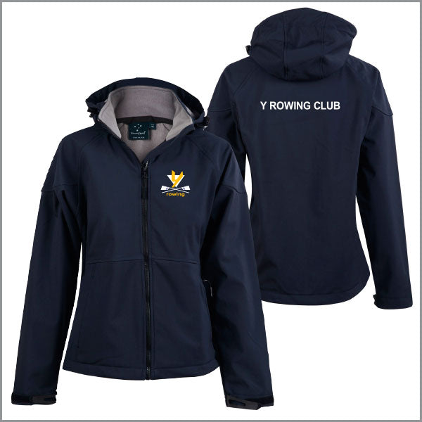 The Y Rowing Club softshell is the perfect way stay warm and protect yourself from rain and splashes. It is water/wind resistant, breathable, tough wearing and insulative. This Garment is cut for the female frame and is printed on the front and back with the Y Rowing Club design.