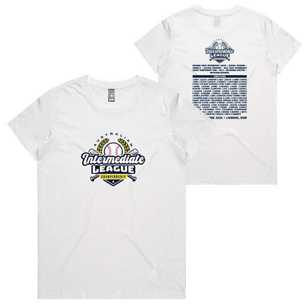 2025 Baseball Australia Intermediate League Championship Ladies Tee - White