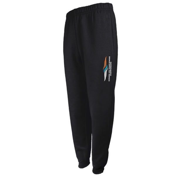 Made from toasty no-pill poly-cotton fleece, these trackies are a must have for those chilly days. Features zip pocket and cuffs. This garment is printed with the Oceania U22 Teams Rowing Championships design on the left leg.