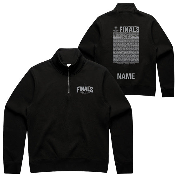 Elevate your casual wardrobe with this Half Zip Crew. This mid-heavy weight sweatshirt boasts a regular fit, crafted from 80% cotton and 20% recycled polyester anti-pill fleece and is pre-shrunk for enduring comfort. This item is printed with the Netball Victoria Association Championships Finals Day design, a full list of competitors names on the back, as well as a custom name.