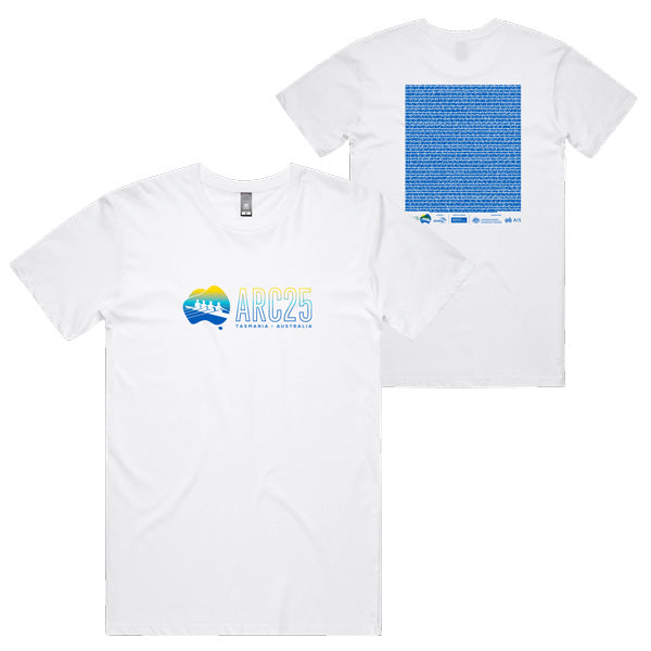 The classic tee. This tee has low shrinkage (~ 3%) and a sturdy neck rib to give it extra durability. This item is cut for the female frame and is printed with the Australian Rowing Championships design on the front and a list of competitors names on the back.