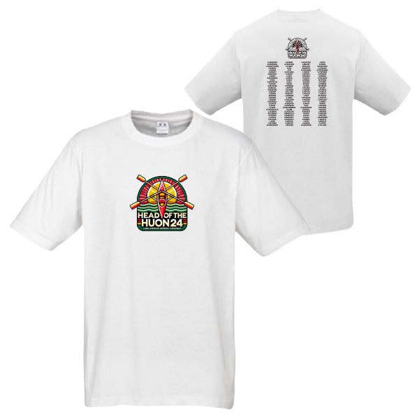 The classic tee. This tee has low shrinkage (~ 3%) and a sturdy neck rib to give it extra durability. This item is printed on the front with the head of the Huon Design and a full list of competitors names on the back.