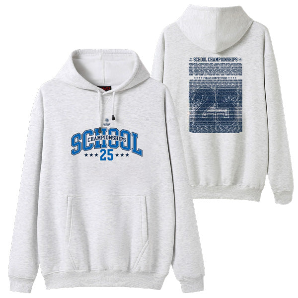 • A garment for almost every occasion. This hoodie is made from a cosy poly cotton fleece with a kangaroo pocket and hood to keep your hands and head warm. This hoodie is printed with the NV Schools Finals design on the front and a list of the competitors names on the back.