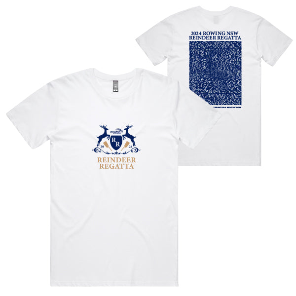 The classic tee. This tee has low shrinkage (~ 3%) and a sturdy neck rib to give it extra durability. This item is cut for the male frame and is printed with the RNSW Reindeer Regatta design on the front and a full list of competitors names on the back.