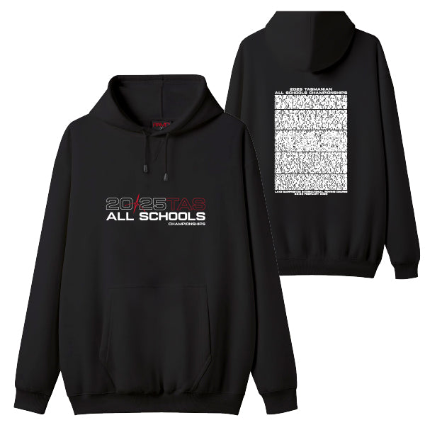 A garment for almost every occasion. The TAS Schools Champs Hoodie is made from a cosy poly cotton fleece with a kangaroo pocket and hood to keep your hands and head warm. This hoodie is printed with the TAS Schools Champs design on the front and a list of competitors on the back.
